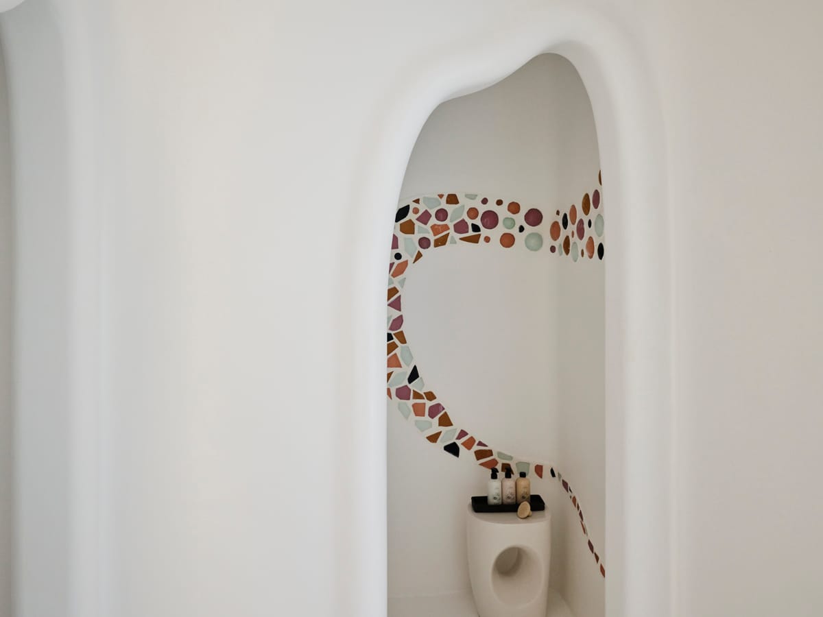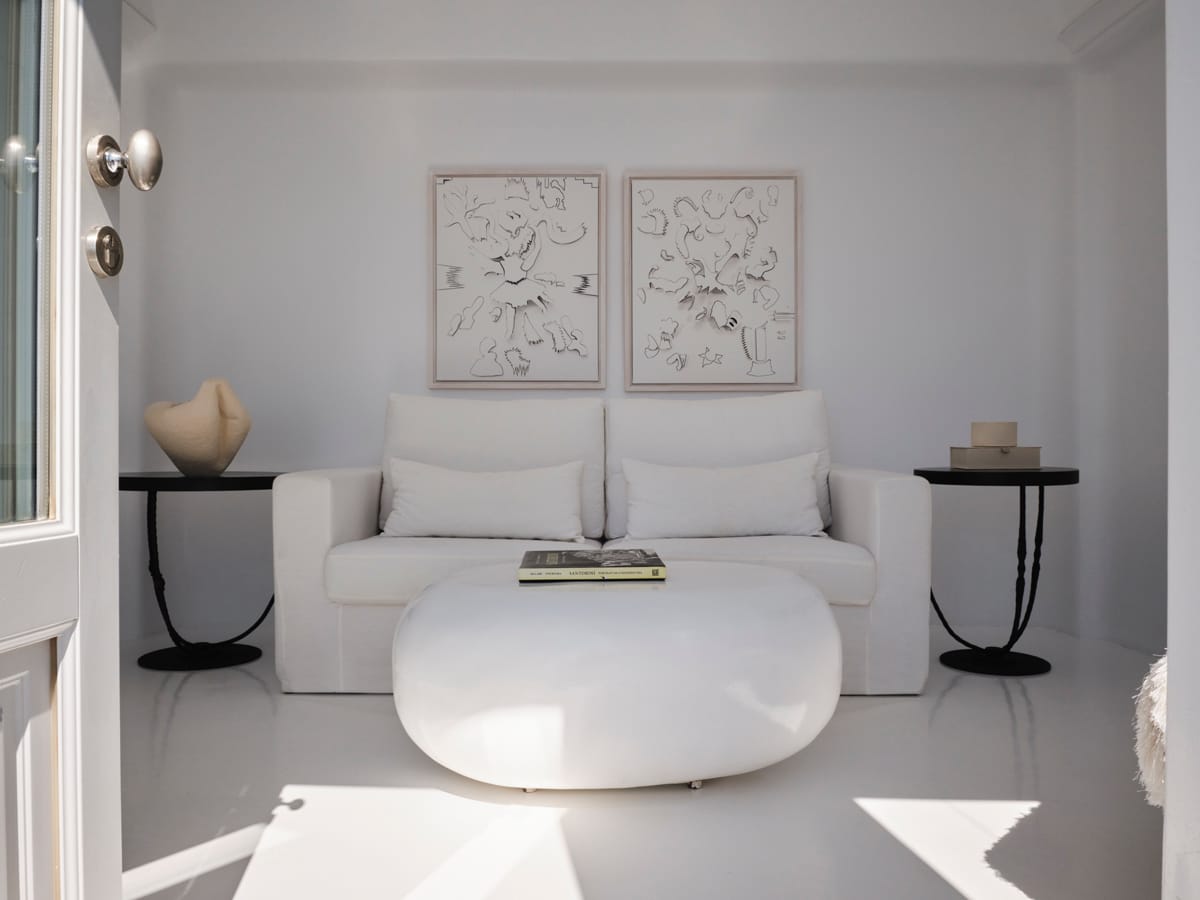 The Master Suite offers a spacious bedroom with a king-size bed, a generous living room, and a bathroom equipped with a refreshing rain shower. This suite is tastefully decorated with a unique artistic style and inspired furnishings.