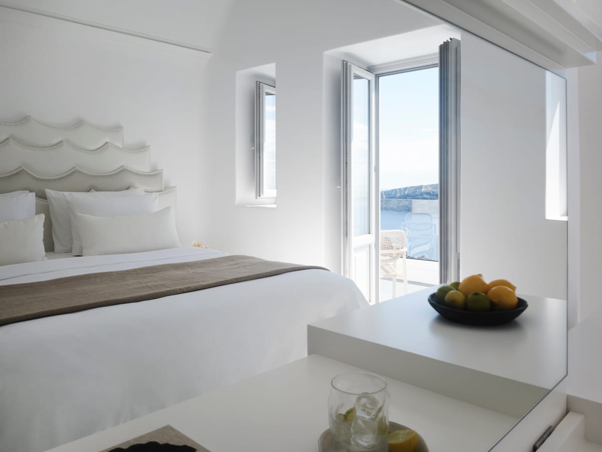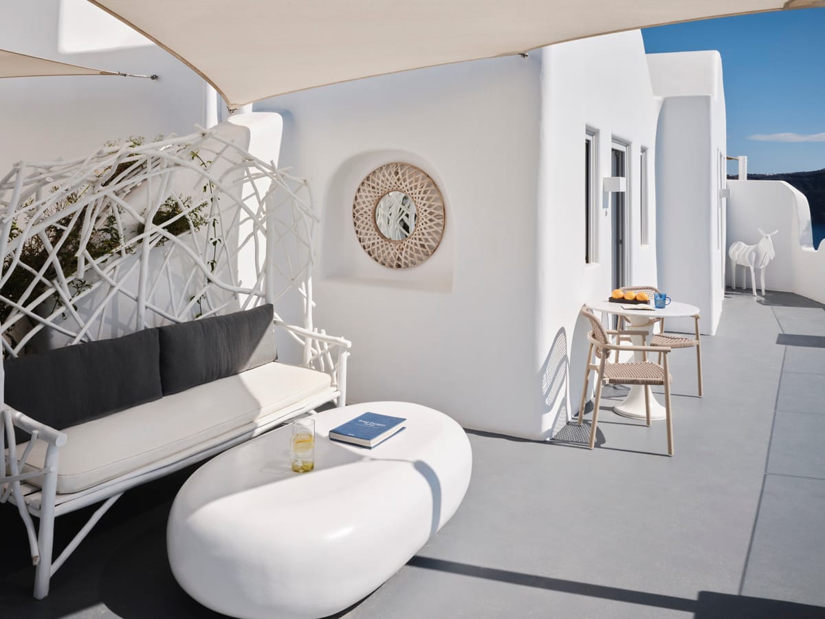Take a dip in your private infinity pool or bask in the sun on the loungers while relishing the magnificent views of the Volcano, the Caldera, and the Aegean Sea.
